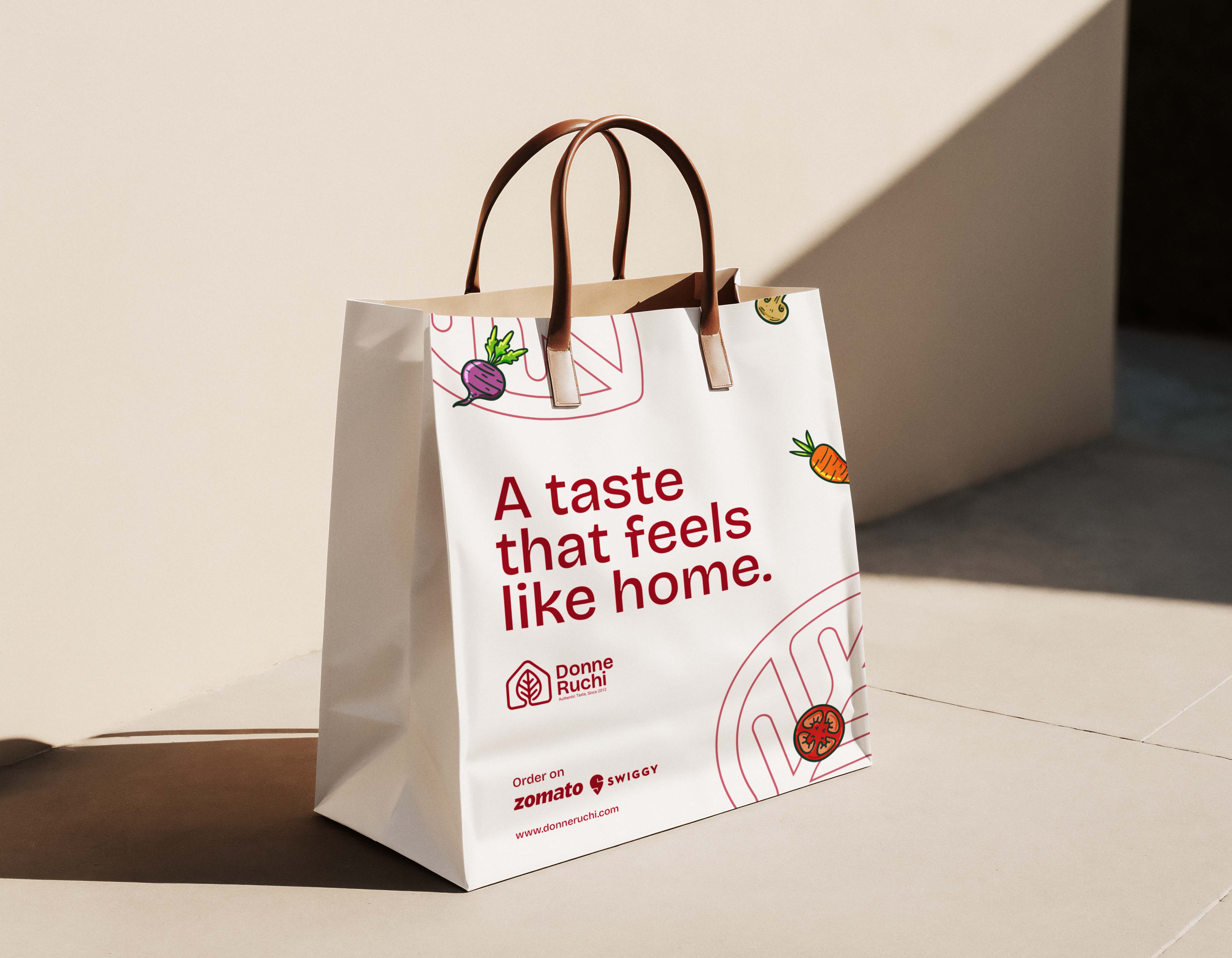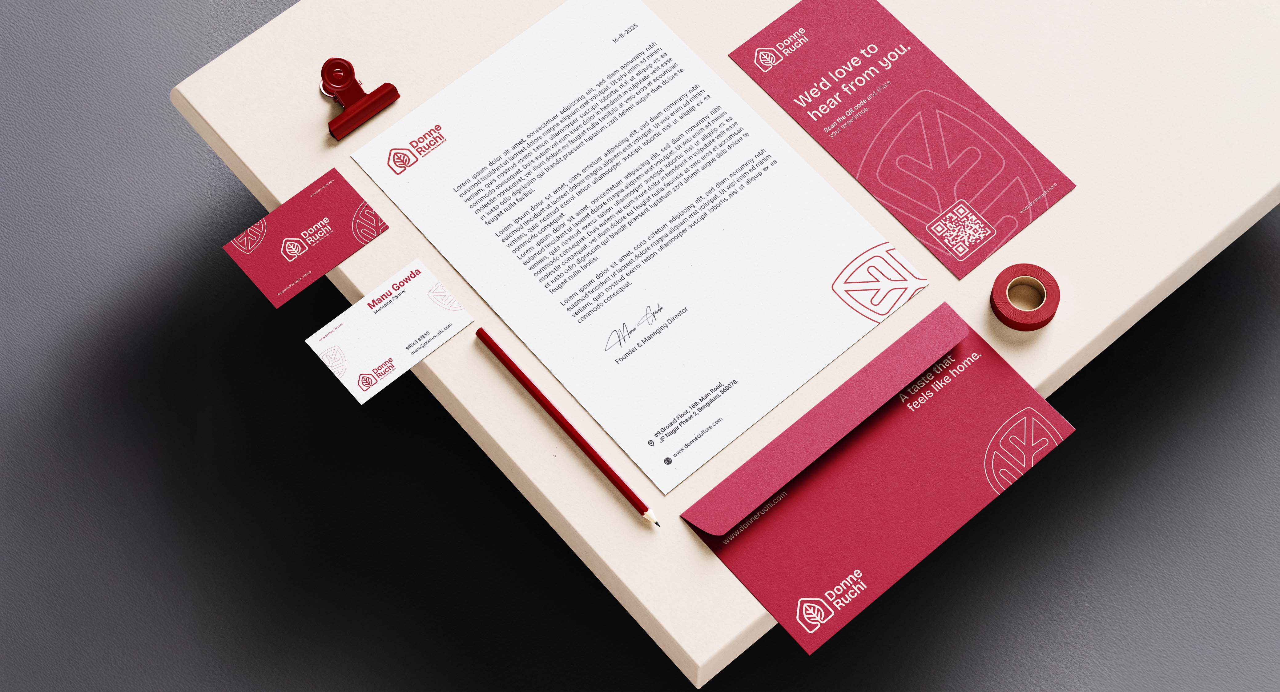 The visual identity extends seamlessly across packaging, signage, dining elements, and digital platforms, creating a strong and memorable presence at every interaction. Each application was designed to feel natural, functional, and emotionally connected to the way the food is served and experienced. From the first glance to the final bite, every detail reinforces a sense of familiarity, comfort, and authenticity. This consistency ensures that wherever Donne Ruchi is seen or experienced, it carries the same warmth, cultural depth, and unmistakable character.